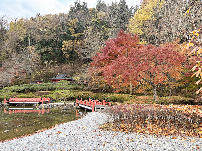 陽の当たる木は紅葉が進んできていますが、伽羅御所では緑が目立ちます。