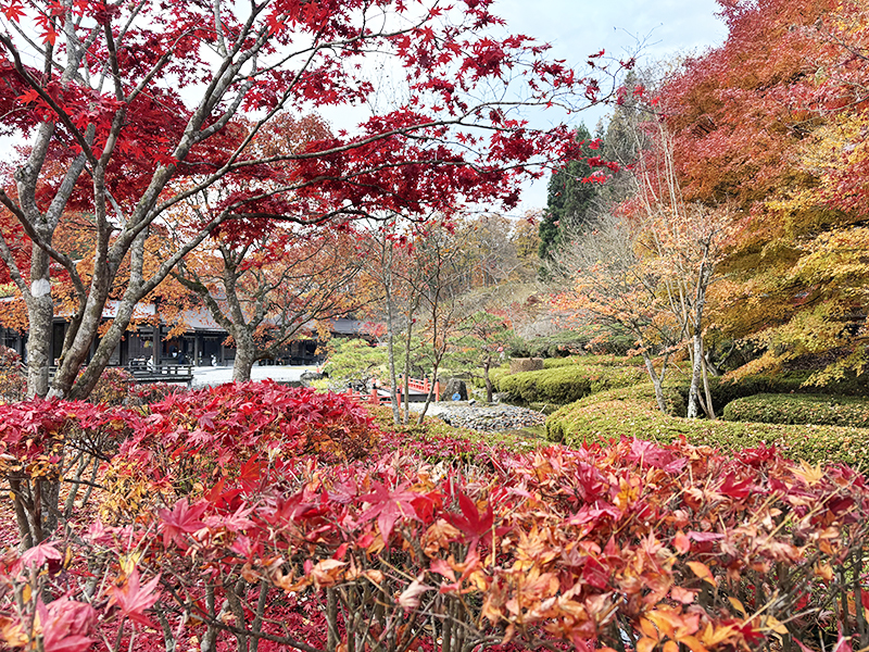 ところどころに真っ赤なモミジやドウダンが見え始めました。