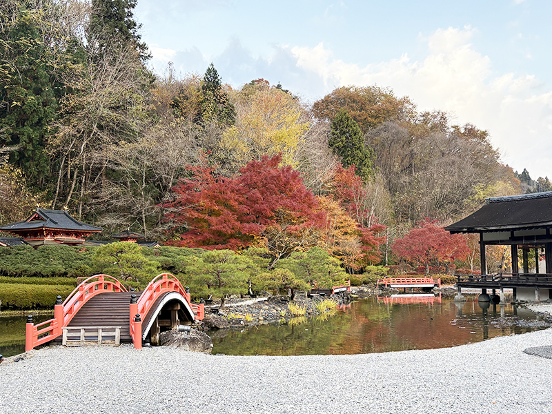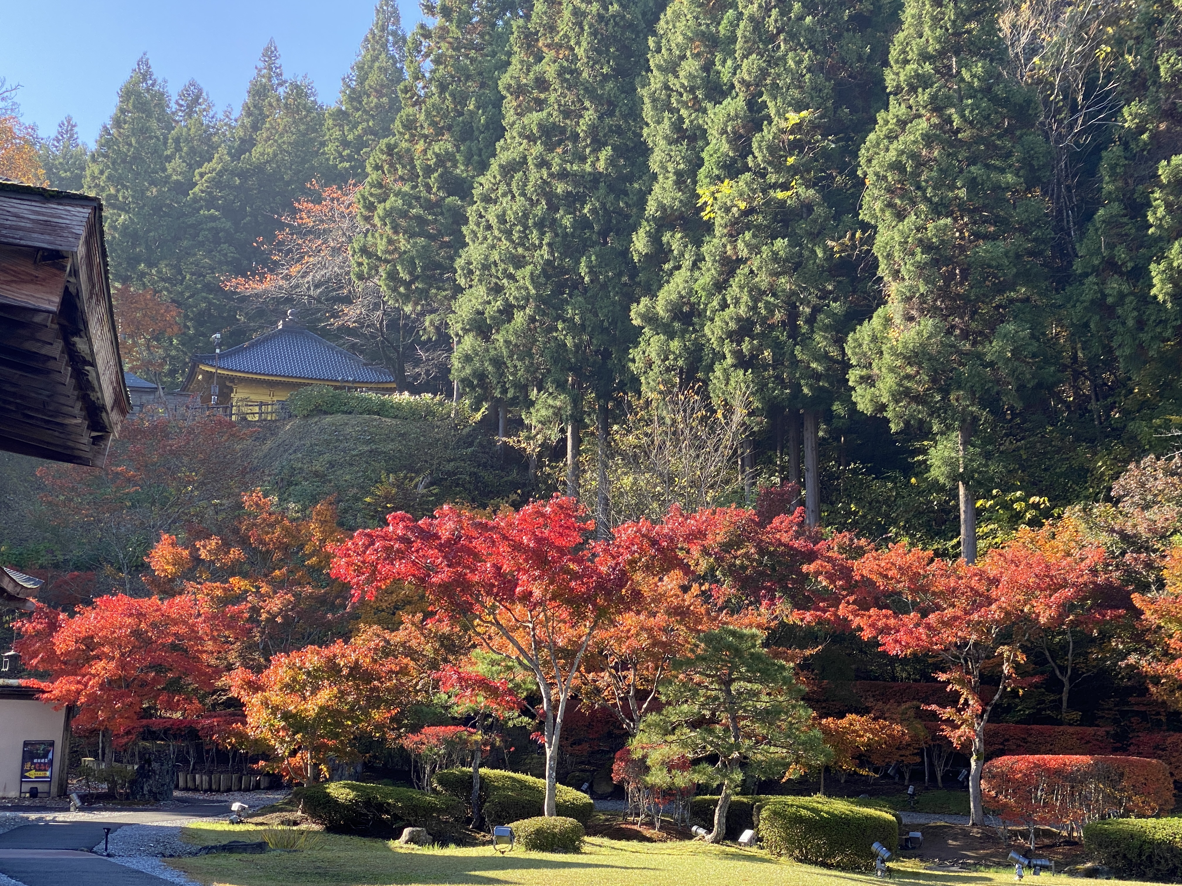 赤と緑のグラデーションが楽しめるようになってきました。伽羅御所も色づきが進んできています。