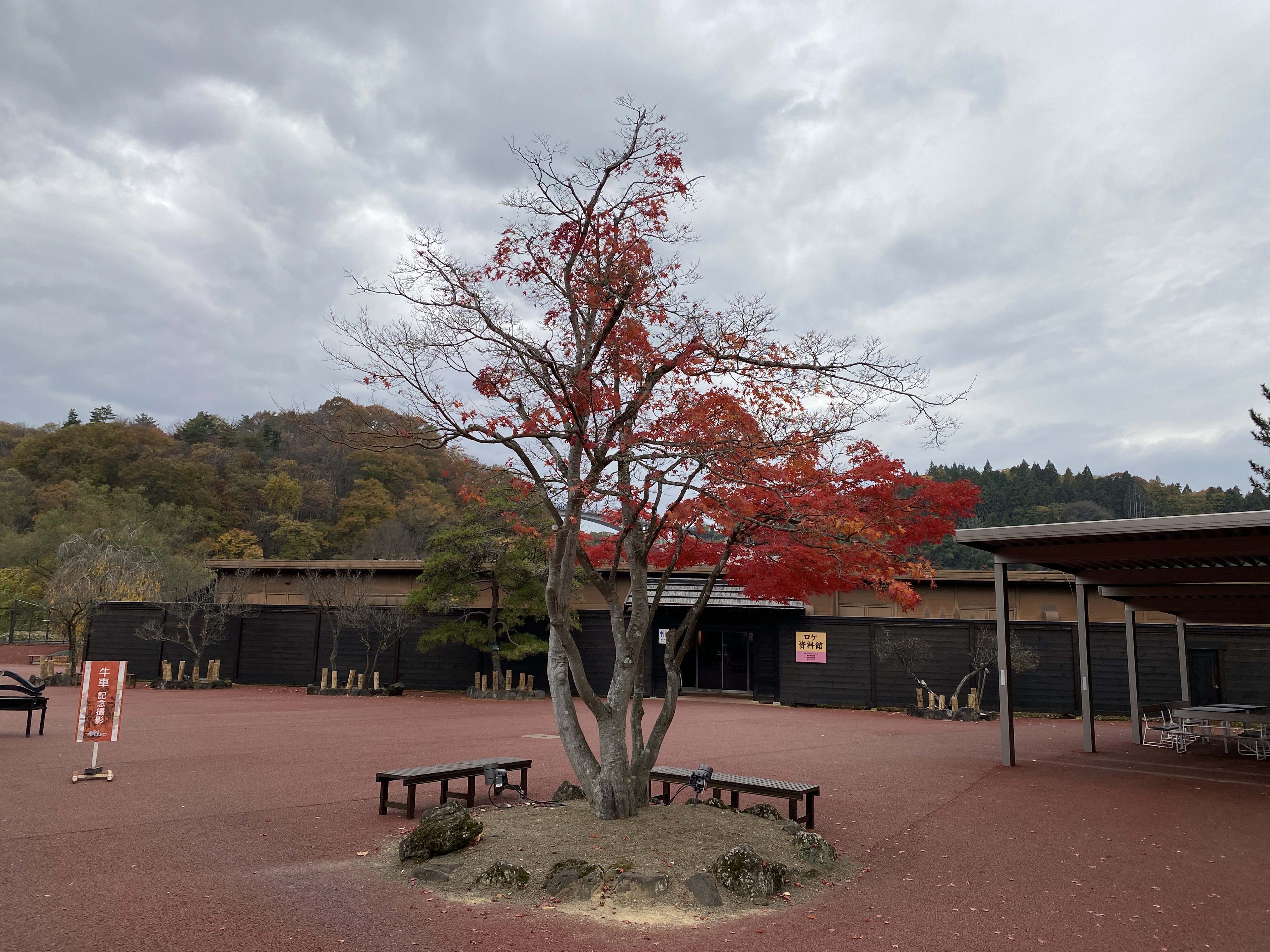 入場ゲートのもみじの木は少しずつ色づいてきました。